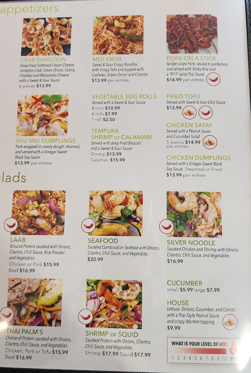 The menu features an array of carefully crafted dishes, from appetizers like crispy vegetable eggrolls and delectable steamed dumplings to entrees such as the unforgettable pad Thai and aromatic yellow curry, both praised by loyal customers.
